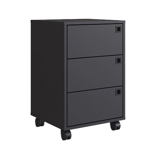 Sua estrutura é composta por chapa em MDP BP 15mm, puxadores embutidos em polímetro preto, rodízios de 63,5mm de altura e corrediças metálicas. Possui também 3 gavetas com medidas de 36x16cm cada.
