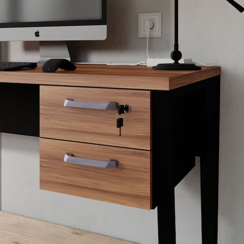 Altura: 29 cm Acabamento da Gaveta: BP Ambiente Principal: Escritório codigo_ean: 7900288266606 Complexidade da Montagem: Baixa: pode ser montado por uma pessoa sozinha Cor: Nogal/Preto Cor do Produto: Nogal/Preto Cor Flex: Não Cor Interna: Preto Escala de Brilho: Fosco Escala de Brilho da Gaveta: Fosco Fechadura de Múltiplas Gavetas: Não Gaveta com Chave: 01 Itens Inclusos: 1 Gaveteiro, Kit Ferragens e Manual da Montagem. Linha ou Coleção: Corporate Manual de Montagem e Instalação: https://product-hub-prd.madeiramadeira.com.br/408362844/documents/b3bc42a4-5656-4982-acb0-7c8278f2b9593277092659517607048769001.pdf Marca: F5 Office Material da Gaveta: MDP Material do Gaveteiro: Madeira Material do Puxador da Gaveta: Cromado Material Principal: MDP Montagem Flex: Não, o produto só pode ser montado conforme a imagem. Necessita Montagem: Sim Origem do Produto: Nacional Peso: 7 kg Peso Máximo por Gaveta: 10 kg Possui Acabamento na Parte de Trás: Sim Possui Gaveta para Pasta Suspensa: Não Possui Portas: Não Possui Prateleiras: Não Recomendações de Uso, Manutenção e Limpeza: Para uma limpeza mais efetiva, utilizar apenas pano macio e sabão neutro. Não utilizar produtos abrasivos. Sapatas Niveladoras: Não Sistema de Montagem: Parafusos e buchas metálicas. Suporta Até (kg): 7 kg Tipo de Corrediça da Gaveta: Metálica Telescópica Tipo de Gaveteiro: Aéreo Tipo de Puxador da Gaveta: Externo Marca: Não Informado