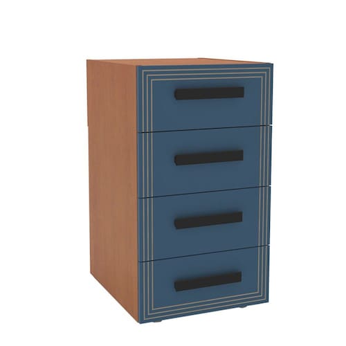 O(a) Gaveteiro Valência 4 Gavetas Azul/Freijó - Politorno é produzido em MDP na escala de brilho Semi-Fosco, e possui um grau de dificuldade de montagem: Médio.