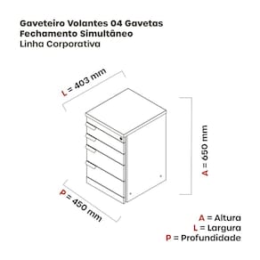 O Gaveteiro Aéreo 04 Gavetas Corporativo é um móvel prático e funcional que ajuda a organizar seu espaço de trabalho. Ele é suspenso, o que otimiza o espaço na mesa e facilita o acesso aos seus materiais. As duas gavetas são espaçosas e possuem travamento simultâneo, garantindo a segurança dos seus pertences. Acabamento da Gaveta: Melamínico Ambiente Principal: Escritório Complexidade da Montagem: Média: pode ser montado por mais de uma pessoa e/ou necessite de maior conhecimento para montagem Cor: Branco Cor do Produto: Branco Cor Interna: Branco Escala de Brilho: Semi-Fosco Escala de Brilho da Gaveta: Semi-Fosco Gaveta com Chave: 01 Itens Inclusos: Um Gaveteiro Linha ou Coleção: Corporativa Manual de Montagem e Instalação: https://product-hub-prd.madeiramadeira.com.br/910632/documents/83188570-ed94-4175-b5d4-700ce5230442198473538701716832215919.pdf Material da Gaveta: MDP Material do Puxador da Gaveta: MDP Material Principal: MDP Necessita Montagem: Sim Origem do Produto: Nacional Peso: 17,63 kg Peso Máximo por Gaveta: 15 kg Possui Portas: Não Possui Prateleiras: Não Recomendações de Uso, Manutenção e Limpeza: Limpeza deve ser feita com um pano levemente umedecido e um pano seco. Sapatas Niveladoras: Não Sistema de Montagem: Parafuso Suporta Até (kg): 20 kg Tipo de Corrediça da Gaveta: Metálica Telescópica Tipo de Puxador da Gaveta: Externo