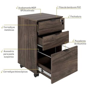 O gaveteiro volante KUGV43 tem um design diferenciado, possui 03 gavetas sendo 01 com chave além dos puxadores de metal e rodízios. Pode ser utilizado em diversas composições com outros móveis, sendo perfeito para fazer parte do seu escritório ou sala. A linha Kuadra tem seu design com inspiração no estilo industrial, que remete muito a decoração usada nos lofts das grandes metrópoles nos anos 60 e 70. Harmonizando o metal e os tons de madeira, foram projetados móveis versáteis e com estilo, que podem compor ambientes flexíveis cheios de personalidade, perfeitos para você decorar sua casa ou seu trabalho, tendo um resultado que caminha do estilo rústico ao moderno. Suas estruturas são fabricadas em aço, com soldas suavizadas e pintura texturizada epóxi-pó, conta com pés niveladores de altura e parafusos na cor preta. Para os tampos são utilizados mdp-bp acetinado com fitas de borda em pvc, dando uma maior durabilidade ao seu móvel. Acabamento da Gaveta: BP Acetinado Complexidade da Montagem: Média: pode ser montado por mais de uma pessoa e/ou necessite de maior conhecimento para montagem Cor: Carvalho Dark/Preto Ônix Cor do Produto: Carvalho Dark/Preto Ônix Cor Interna: Carvalho Dark/Preto Ônix Escala de Brilho: Fosco Escala de Brilho da Gaveta: Fosco Gaveta com Chave: 01 Itens Inclusos: 01 Gaveteiro Volante com 03 Gavetas Linha ou Coleção: Kuadra Manual de Montagem e Instalação: https://product-hub-prd.madeiramadeira.com.br/564242/documents/79be84ae-2805-418c-ab6d-5c2a234d80fb49ce6a8e2a1237520534567375.pdf Material da Gaveta: MDP Material do Puxador da Gaveta: Metal Material Principal: MDP Necessita Montagem: Sim Origem do Produto: Nacional Peso: 18,48 kg Peso Máximo por Gaveta: 5 kg Possui Pés: Não Possui Portas: Não Possui Prateleiras: Não Recomendações de Uso, Manutenção e Limpeza: Para a limpeza, utilize flanela seca ou pano macio levemente umedecido em água. Utilize um pano seco em seguida. Evite contato com produtos químicos (solventes, thinner, acetona, etc) e não utilize nenhum tipo de esponja de aço. Rodízio com Trava: Não Sapatas Niveladoras: Não Sistema de Montagem: Parafusos e minifix Suporta Até (kg): 30 kg Tipo de Corrediça da Gaveta: Metálica Simples Tipo de Puxador da Gaveta: Externo Ean: 7908167226802