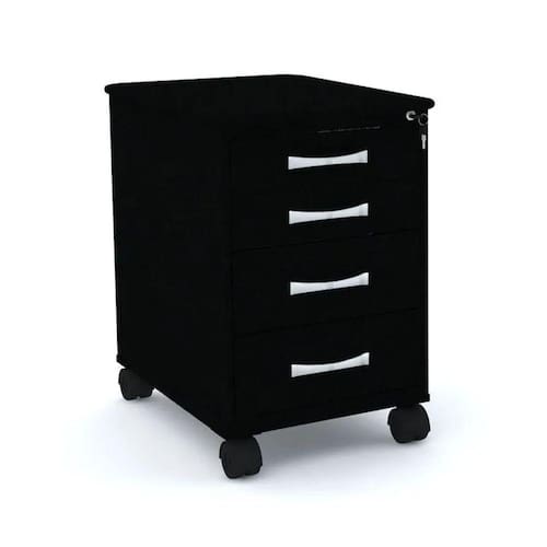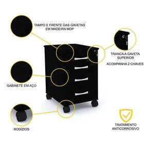 Neste gaveteiro preto com quatro gavetas e rodinhas, você encontra praticidade, funcionalidade e a peça que faltava para você organizar seu escritório. Com qualidade e resistência garantida graças a um reforço em aço nas gavetas, guardar e armazenar papéis, documentos, acessórios e materiais de trabalho fica fácil, fácil. Com fechamento à chave, duas gavetas menores e duas gavetas maiores para diferentes tipos de organização, esse gaveteiro é tudo o que você precisa pelo preço que você procura! Invista neste móvel e facilite o dia a dia da sua equipe, empresa, escola, consultório, hospital, instituição, clínica, companhia de telemarketing, departamento de atendimento ou até mesmo seu home-office. Tenha tudo à mão e se surpreenda com este gaveteiro volante da linha Maxxi da Pandin, uma linha completa que pode mobiliar seu escritório com qualidade, beleza e economia.