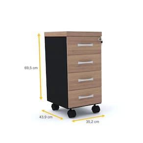 Depois de reorganizar a empresa, remodelar o escritório e fazer planos para o ano de trabalho, é hora de começar a escolher novos móveis que vão ajudar você nessa empreitada. Prático, discreto, elegante e funcional, este gaveteiro tem quatro gavetas no mesmo tamanho e vem na cor de madeira natural, com laterais pretas. Essa é uma peça coringa para você organizar seu escritório e armazenar papéis, documentos, acessórios e materiais de trabalho com estilo e segurança, já que ela também possui um sistema de fechamento à chave. Esta é mais uma peça da linha PE40 da Pandin, conhecida por suas peças de design clássico e sofisticado, que unem beleza, funcionalidade e estilo ao melhor custo-benefício do mercado. Nesta linha, você também vai encontrar uma diversidade de arquivos, armários, estantes, gaveteiros aéreos e mesas cheios de estilo, sob medida para suas necessidades.