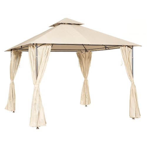 A cobertura em poliéster de alta qualidade protege contra o sol e o vento, enquanto as cortinas laterais inclusas proporcionam charme extra à decoração e mais privacidade para seus momentos de lazer.