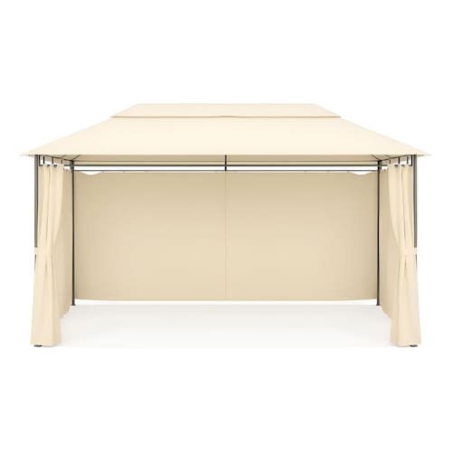 A cobertura em poliester de alta qualidade protege contra o sol e o vento, enquanto as cortinas laterais inclusas proporcionam charme extra a decoracao e mais privacidade para seus momentos de lazer.