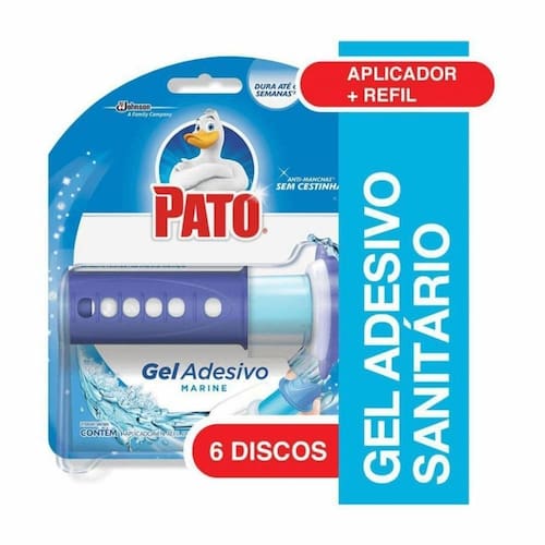 Pato Gel Adesivo é uma fórmula em base de gel autoadesiva para o vaso sanitário que permite que você não precise se preocupar com blocos cheios de germes. A sua fórmula deixa um escudo protetor ao redor do vaso sanitário, impedindo a formação do limo e as manchas que abrigam germes. Basta aderi-lo ao interior do vaso sanitário para mantê-lo limpo e fresco a cada descarga.