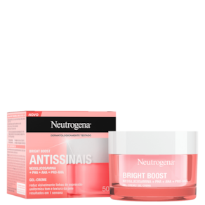 Gel-creme anti-idade para todos os tipos de pele. Neutrogena Bright Boost reduz visivelmente linhas finas e uniformiza tom e textura da pele. O Gel-Creme Neutrogena Bright Boost acelera a renovação celular em até 10x, atenuando marcas de expressão e melhorando a aparência da pele, deixando-a mais lisa, uniforme e iluminada. Possui textura gel-creme não oleosa e contém Neoglucosamina + trio de ácidos renovadores.