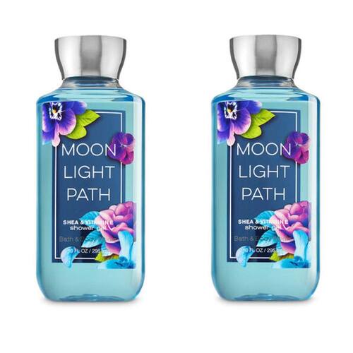 Bath and Body Works Moon Light Path (pacote com 2) Gel de banho 283 g (a embalagem pode variar) Moonlight Path é macio, fresco, romântico e reconfortante como um passeio em jardins exuberantes. Nosso gel de banho testado por dermatologistas combina vitamina E nutritiva e aloe para criar uma espuma rica e borbulhante. Suave e não seca, é o limpador diário perfeito para deixar a pele fresca e limpa!