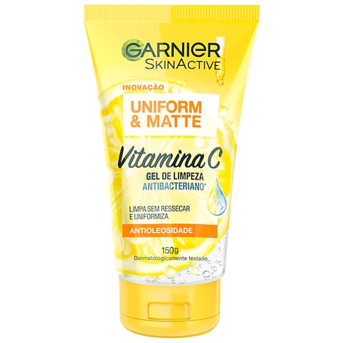 O Gel de Limpeza Facial Antibacteriano Uniform & Matte Garnier Vitamina C 150ml é um produto em gel específico para limpeza facial com textura leve e transparente, limpa profundamente a pele sem ressecar, remove impurezas e controla a oleosidade. O Gel de Limpeza Garnier concentra o poder da Vitamina C e do Pantenol, deixando a pele uniforme e hidratada.