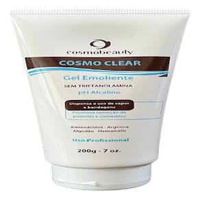 Cosmo Clear Gel Emoliente Sem Trietanolamina atua de forma precisa e efetiva para remoção dos comedões e pústulas durante os procedimentos de limpeza de pele. Sua base atua na normalização da barreia cutânea promovendo conforto e agilidade durante o protocolo.Benefícios e característicasSem TrietanolaminapH AlcalinoDispensa uso de vapor e bandagensPromove remoção de pústulas e comedõesModo de usarAplique a Cosmo Clear Gel Emoliente Sem Trietanolamina sobre a face previamente higienizada e, deixa agir por 15 minutos. Caso utilize o vapor, deixe agir de 7 a 10 minutos. Após remova o produto e inicie a extração.AtivosAminoácidosArgininaAlgodãoHamamélis