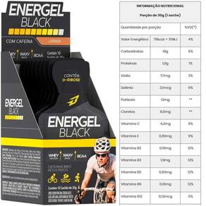 Vá mais longe com Energel Black ENERGEL BLACK é formulado com um mix completo de carboidratos em suas diferentes formas, como a Palatinose, Frutose, D-Ribose e Waxy Maize, que garantem o aporte energético ideal para antes, durante e depois das atividades físicas.