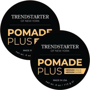 TRENDSTARTER - POMADE PLUS (118 g) (embalagem com 2) – Fixação média – Brilho médio – Produto de gel premium à base de água sem flocos premium para todos os tipos de cabelo – Confiabilidade o dia todo - Fixação mais rígida – A pomada Plus da TRENDSTARTER oferece uma fixação tipo gel sem a aderência. Melhor para estilos definidos e assistidos por pente. - Fixação média – Defina seu penteado com a pomada Plus da TRENDSTARTER. - Acabamento de brilho médio – Adicione um brilho saudável ao seu penteado. - Ingredientes premium – A TRENDSTARTER usa ingredientes da melhor qualidade para manter seu cabelo saudável e estiloso. A pomada Plus da TRENDSTARTER contém muitos nutrientes, incluindo óleo de argan. Nossa fórmula patenteada fortalece, condiciona e hidrata todos os tipos de cabelo. - Feito nos EUA
