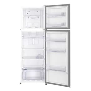 Seu interior foi pensado para facilitar a organizacao: sao 3 prateleiras e 1 gaveta no gabinete, alem de 3 prateleiras na porta do refrigerador e 2 no freezer. As prateleiras removiveis e ajustaveis permitem adaptar o espaco conforme a necessidade. O modelo tambem conta com porta-ovos, forma de gelo embutida e iluminacao LED, garantindo praticidade e visibilidade em todos os compartimentos.