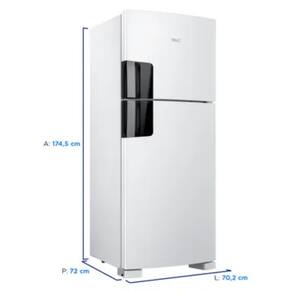 Operando com gas ecologico, o aparelho garante menor impacto ambiental e uma economia de ate 20 de energia eletrica. O sistema Frost Free evita o acumulo de gelo, e o filtro antiodor integrado mantem o interior livre de aromas desagradaveis. O controle termico e realizado via painel interno, permitindo o ajuste manual em 5 niveis de temperatura para o refrigerador e 3 para o freezer.