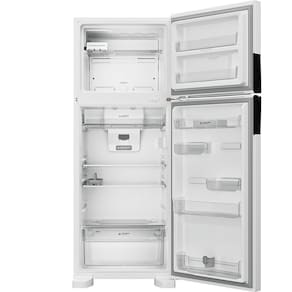 Material das prateleiras: Geladeira: Prateleiras, gavetas refrigerador em plastico | Freezer: Prateleira do freezer e porta em plastico