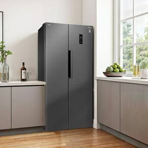 A Geladeira Philco PRF46C Side By Side Inox oferece grande capacidade e tecnologia avançada para facilitar a rotina da sua família.