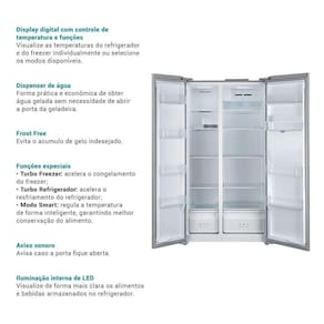 São muitas funções e economia, com classificação energética A, muita beleza e funcionalidades na sua cozinha. A divisão da geladeira conta com 5 prateleiras, 1 gaveta, 3 prateleiras de porta e reservatório de água e a divisão do freezer com 5 prateleiras, 1 gaveta e 4 prateleiras de porta ajudam a organizar os alimentos deixando-os mais visíveis para que nada seja desperdiçado.
