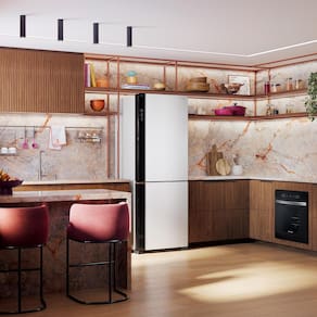 Equipada com a inovadora Tecnologia Xpert Inverter, esta geladeira oferece alta performance com até 25% de economia de energia. Seus sensores inteligentes mantêm a temperatura estável, conservando alimentos frescos por até 44% mais tempo, enquanto a gaveta Fresh Space preserva frutas e legumes por até 20 dias. Além disso, o acabamento moderno com detalhes em cobre eleva a estética da sua cozinha a um nível profissional.