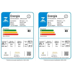Caracteristicas: Capacidade total: 385 Litros Tipo de degelo: Frost Free Numero de portas: 2 Painel de controle: Interno Plugue e tomada: 10 A Tecnologia xpert inverter Consumo aproximado de energia 127 V -kW/ ano-: 25.1 Frequencia -Hz-: 60 Puxadores: Injetados na cor preta com acabamento metalico. Painel de controle: Interno Tipo de Displey: LED Tipo de controle do painel: Eletronico Controle de temperatura Refrigerador/Freezer : Sim Portas ovos: Sim Compartimento extra frio: Sim Drego de degelo: Sim Pes ajustaveis: Sim Inmetro: 005218/2016