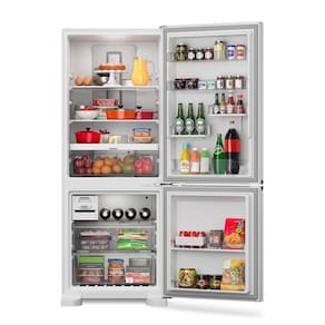 Características do Produto: Marca: Brastemp Modelo: BRE57FB Tipo: 2 portas Frost Free Inverse Capacidade do refrigerador: 311 litros Capacidade do freezer: 136 litros Capacidade total -litros-: 447 litros Portas: 02 portas Controle de temperatura: Sim Degelo: Frost Free Porta reversível: Não Painel Eletrônico: Externo Display: Touch screen Aviso de porta aberta: Sim Prateleiras: Infinity Compartimento para gelo: Sim Compartimento extra-frio: Não Porta ovos: Sim Porta latas: Não Gavetas: 03 gavetas Classificação Energética: A+++ Consumo de energia: 46,5 kW/h Certificação Inmetro: 005218/2016 Funções: Smart Flow, Carbon AirFilter, Safe Power, Twist Ice, Fresh Box, Turbo Ice e Space Adapt