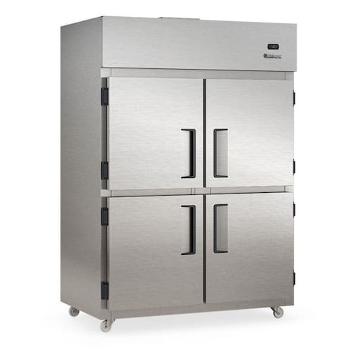 Geladeira Comercial 4 Portas Grcr4p Gelopar Refrigerador 1421 Litros Inox 220v Refrigerador Comercial 4 Portas GRCR4P Gelopar. Conservação e exposição de produtos em cozinhas industriais de hotéis, restaurantes, clubes, bares, lanchonetes, confeitarias, mercados, mercearias e outros. Temperatura: 0 a +7C. Refrigeração: Ar forçado com evaporador aletado. Controlador eletrônico com indicador de temperatura. Degelo: Manual. Prateleiras: 4 níveis, aramadas e reguláveis. Portas cegas com fechamento automático. Revestimento Interno: em aço inox 304. Revestimento Externo (frente e laterais): aço revestido com película tipo inox. Parte frontal com resistência no quadro de portas. Construção do gabinete: Monobloco. Estrado em PVC na Base. Gabinete com rodízios e travas. CAPACIDADE: 1421L. CONSUMO: 6,61kWh/dia. PESO: 178Kg. DIMENSÕES EXTERNAS(CxAxL): 140x201x90cm. Equipamento certificado conforme Portaria Inmetro n 371/2009. Refrigerador Comercial 4 Portas GRCR4P Gelopar é na Atau. Marca - Gelopar Modelo - GRCR4P Capacidade - 1421 Litros Frente - 140cm Altura - 201cm Profundidade - 90cm Temperatura - 0 a +7C Peso - 178Kg Consumo - 6,61kWh/dia Portas - 4 Portas Prateleiras - 4