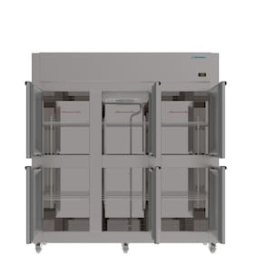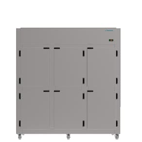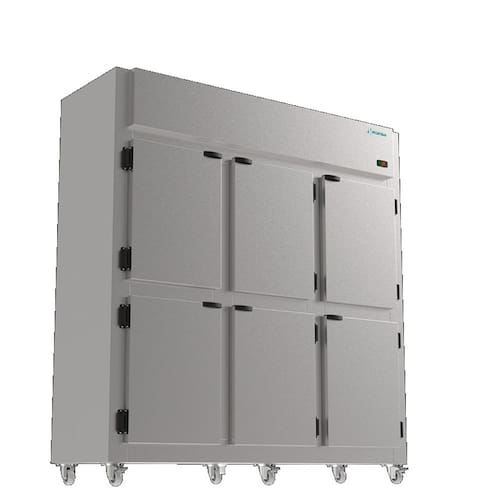 Descrição Características do Produto: Temperatura: 0° a +°7C Isolamento térmico em poliuretano injetado Revestimento externo em Aço inoxidável AISI 430 Escovado Revestimento interno em Aço inoxidável AISI 430 Brilhoso Sistema de refrigeração: Ar-forçado (Frost Free), ecológico e econômico. Portas com sistema anti-transpirante c/ contra tampo e puxadores Rodízios para melhor deslocamento 3 níveis de prateleiras aramadas bipartidas, reguláveis e pintadas em epóxi branco Controlador de Temperatura eletrônico digital com indicador de temperatura Degelo Automático Gás Refrigerante R134a Especificações técnicas: Dimensão do Equipamento (mm) 1820x0620x1940 mm Volume Total 1382 Litros Peso Bruto 154 Kgs Tensão 220V Frequência 60Hz Consumo 4,00 Kw/dia