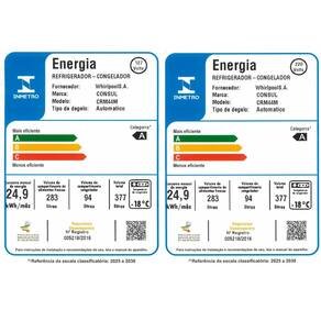 Caracteristica: Capacidade Total: 377L Gas: R600a Tipo de Degelo: Frost Free Painel de Controle: Interno Plugue e Tomada: 10 A Funcao Turbo Espaco Extra Frio Iluminacao em LED Gavetao de Frutas e Legumes Porta Ovos Prateleiras em Vidro e Acabamento em Plastico Tipo de puxador: Embutido Painel de Controle: Interno Controle de temperatura: Sim Com Pes Ajustaveis: Sim Inmetro: 005218/2016