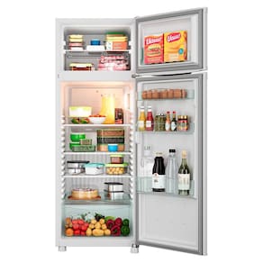 Com 2 portas e freezer localizado na parte superior, a geladeira e equipada com painel de controle interno com display LED, oferecendo ajuste de temperatura eletronico e 3 niveis de temperatura no refrigerador.