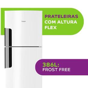 Caracteristicas: Marca: Consul Capacidade Total (L): 386 Capacidade do Freezer (L): 96 Tipo de Degelo: Frost Free Compartimento Extra Frio: Sim Porta Ovos: Sim Porta Reversivel: Nao Numero de Portas: 2 Dispenser de Agua: Nao Porta Latas: Nao Recipiente Para Guardar Gelo: Nao Gavetas: 1 Gaveta Trava de Seguranca: Nao Eficiencia Energetica: A