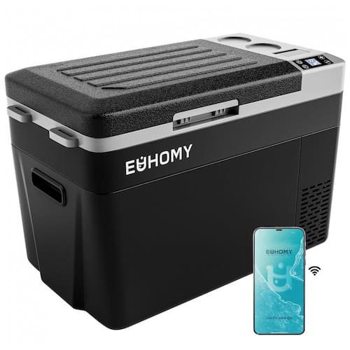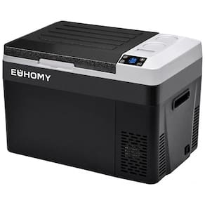 Resfriamento e modo duplo: O refrigerador de carro adota tecnologia de refrigeração por compressor, este refrigerador portátil pode atingir resfriamento rápido de 10 a 0 em 15 minutos o frigorífico do carro também inclui uma divisória amovível para separar as duas zonas, com modo de poupança de energia ECO, este frigorífico rv só funciona a 45W. Mesmo no modo MAX, o consumo do seu funcionamento em loop inteligente é de apenas cerca de 1 kWh, dia.