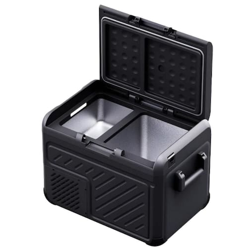 Geladeira e Freezer Portátil 37L com sistema Dual Zone, ideal para uso em carros, caminhões e motorhomes. Com painel digital e controle de temperatura independente nos dois compartimentos, oferece praticidade e eficiência no transporte e conservação de alimentos e bebidas.