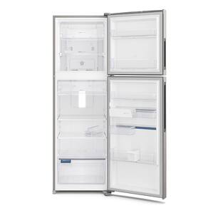 Características: Marca: Electrolux Modelo: IF46S Tipo: Duplex Frost Free Capacidade do refrigerador: 293 litros Capacidade do freezer: 117 litros Capacidade total -litros-: 410 litros Frost free: Sim Controle de temperatura: Automático Degelo: Automático Inverter: Sim Porta reversível: Não Painel: Digital Alarme na porta: Sim Puxadores: Embutido Iluminação interna: LED Prateleiras no Freezer: Gabinete: 2 Prateleiras | Porta: 2 Prateleiras Prateleiras no refrigerador: Gabinete: 3 Prateleiras e 1 Gaveta | Porta: 4 Prateleiras Prateleiras removíveis: Sim Material das prateleiras: Gabinete: Vidro Temperado/ Plástico Transparente | Porta: Plástico Transparente Compartimento extra-frio: Sim Porta ovos: Sim Gavetão para legumes: Sim Pés: Niveladores Gás refrigerante: R600a Nível de ruído: 49 dBA Classificação Energética: A+++ Consumo de energia: 42.9 kWh/mês Frequência: 60 Hz Portas: 02 portas Certificação Inmetro: 005404/2016 Prateleiras retráteis: Sim Autosense: Sim Turbo refrigerador: Sim Matéria-prima: Aço