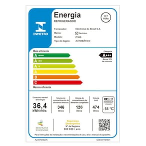 (*) Maior freezer do segmento top freezer combinado frost free até 500 litros conforme tabela de eficiência energética de 06/10/2021 PBE (Programa Brasileiro de Etiquetagem).