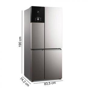 Eletrolux Experience Multidoor 581L Inverter Flexispace (IQ8S)As funcionalidades são pensadas para garantir mais espaço e mais qualidade no armazenamento dos alimentos. Para isso, conta com quatro portas para atender a todas as necessidades do seu dia a dia.O compartimento inteligente FlexiSpace com temperatura garante a preservação ideal para cada tipo de alimento e bebida, que vai de freezer (23ºC) à geladeira (7ºC). A geladeira possui também a tecnologia exclusiva AutoSense, que ajusta a temperatura automaticamente, garantindo uma melhor preservação dos alimentos por até 30 por cento mais tempo. A IA reconhece seus hábitos de consumo, identificando os momentos de maior uso e menor uso da geladeira, deixando-a mais fria ou estabilizando a temperatura.A gaveta TasteLock possui vedação especial e controle automático de umidade que mantém frutas e vegetais frescos por até 14 dias. E como a Tecnologia Inverter mantém a temperatura mais estável, reduz o consumo de energia em até 37 por cento, tornando-as uma das geladeiras mais econômicas do segmento, além de oferecer condições ideais para preservar os alimentos.Com o TasteGuard, a Geladeira Electrolux Multidoor Experience 581 L elimina até 9x7 mais rápido os maus odores causados por bactérias, garantindo que sua geladeira permaneça sempre higiênica. Para facilitar a retirada de gelo, com o IceTwister é possível apenas girar a forma para que eles caiam no compartimento inferior, além da praticidade do sistema de abastecimento de água.Características:Tipo: MultidoorPortas: 04Frost Free: simPainel Eletrônico: simPrateleiras: Refrigerador: 2 prateleiras, 2 gavetas / Porta Refrigerador: 7 compartimentos / Freezer: 2 prateleiras, 1 gavetaAlarme de Portas Abertas: simDegelo Automático: simControle Automático de Temperatura: simFreezer Invertido: simCapacidade Total: 581LCapacidade de Armazenamento do Freezer: 191LCapacidade de Armazenamento do Refrigerador: 390LNão é BivoltDimensões Altura: 190 cmLargura: 83,5 cmProfundidade: 74,2 cmPeso: 100 kgGarantia do Fabricante: 12 meses