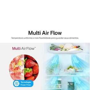 Com o uso de múltiplas saídas de ar distribuídas por toda a geladeira, você tem a garantia de uma temperatura uniforme por todo o compartimento interno. Com isso, você ganha flexibilidade para guardar seus alimentos onde preferir e otimizar o espaço interno.