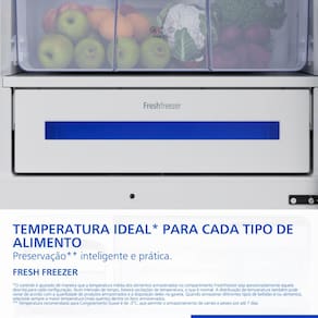 Para quem busca uma alimentação mais saudável, a tecnologia Vitamin Power utiliza luzes LED especiais para simular a fotossíntese, potencializando as vitaminas C e D de frutas e verduras. No gavetão FreshZone com Climate Control, a umidade é controlada com precisão, mantendo seus vegetais frescos e crocantes por muito mais tempo.