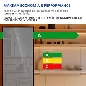 As geladeiras Panasonic têm menor consumo de energia e, por isso, possuem a classificação A na tabela do Inmetro.