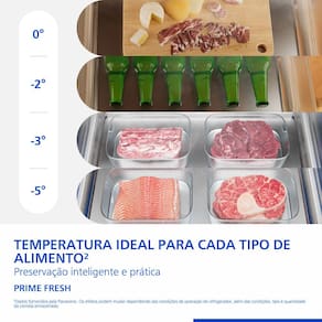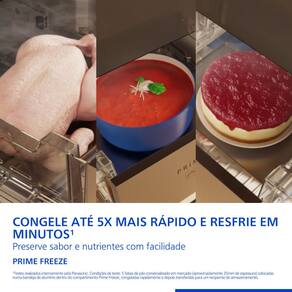 Com seu design sofisticado e porta de vidro, a geladeira DB69 oferece 540 litros de capacidade em apenas 75 cm de largura. A função Prime Freeze congela os alimentos até 5 vezes mais rápido, preservando as partículas do alimento, o que deixa a comida ainda mais gostosa. O compartimento Prime Fresh mantém carnes e peixes levemente congelados a -3°C, garantindo a conservação de nutrientes e sabor. Assim, não é necessário descongelar e você pode consumi-los em até 7 dias*! Além disso, permite ajustar a temperatura de -5°C a 4°C, proporcionando o armazenamento ideal para diferentes tipos de alimentos.