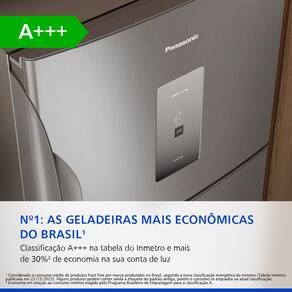 Mais economia e espaço para o seu dia a dia! Nº1: as geladeiras mais econômicas do BrasilCom o menor consumo de energia do Brasil, as geladeiras Panasonic têm classificação A+++ no Inmetro e garantem mais de 30% de economia na sua conta de luz Geladeira Livre de Bactérias com o Sistema Antibacteria AgFiltro de carbono com íons de prata que age no duto durante a circulação de ar, eliminando 99,9% das bactérias e odores indesejados. Mais espaço na geladeiraCom a geladeira Frost Free BT56, o espaço é sempre garantido. Com 435 litros de capacidade total e freezer que comporta até 102 litros, oferece praticidade e organização. Gaveta Fresh ZoneMais espaço para organizar frutas e legumes, mantendo-os frescos e saudáveis por mais tempo Compartimento ExtrafrioConserve carnes, frios e laticínios de forma eficaz
