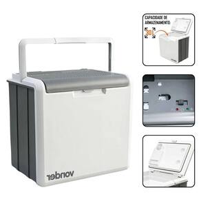 Geladeira/Refrigerador Automotivo Vonder 30 Litros 12V Praticidade, Mobilidade e Refrigeração em Qualquer Lugar!Leve mais conforto e comodidade para suas viagens com o Refrigerador Automotivo Vonder 30 Litros! Ideal para manter bebidas, alimentos e medicamentos na temperatura ideal enquanto você está na estrada, no camping, na praia ou no trabalho. Compacto, moderno e funcional, ele é o companheiro perfeito para quem busca refrigeração eficiente em movimento.Características TécnicasMarca: VonderModelo: Refrigerador Automotivo 30LCapacidade: 30 litrosTensão: 12V (tomada automotiva)Cor: Cinza com BrancoTipo: Elétrico automotivo portátilFunção: Refrigera e conserva alimentos e bebidasMaterial: Estrutura resistente e de fácil limpezaAlimentação: Conector de 12V para entrada veicular Diferenciais e Benefícios Capacidade ideal para armazenar até 30 litros de produtos Design moderno, leve e portátil fácil de transportar e guardar Mantém alimentos e bebidas frios por longos períodos Funciona diretamente no sistema elétrico do carro (12V) Ideal para viagens, passeios, pescarias, motorhomes, caminhões e campings Sistema de refrigeração eficiente com baixo consumo de energia Tampa com vedação reforçada, garantindo conservação máxima Conteúdo da Embalagem1 Geladeira/Refrigerador Automotivo Vonder 30L1 Cabo de alimentação 12V veicularManual de instruções