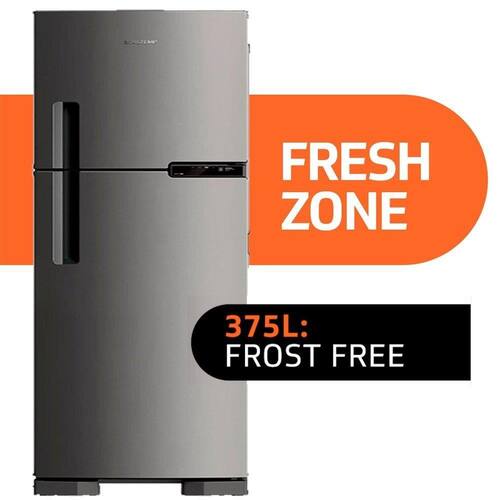 Informações Adicionais do produto: Cor principal (visão frontal): Inox Capacidade total líquida (l): 375 Tipo de degelo: Frost free Número de portas: 2 Painel de controle: Externo Posição do freezer: Em cima Plugue e tomada: 10 A Tipo de iluminação interna refrigerador: Led