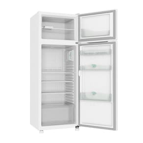 Características do Produto: Modelo: CRD37EB Consumo aproximado de energia: 44 KWh/mês Capacidade do refrigerador: 258L Capacidade do freezer: 76L Controle de temperatura interno: Sim Capacidade total: 334L Lâmpada: 15 W Portas: 2 Tipo de degelo: Manual Cor: Branco Tipo de Degelo:Cycle Defrost Porta ovos Pés Niveladores