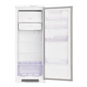 NãoRefrigerador Electrolux Degelo Prático 240 Litros RE31 Branco Design único e moderno que combina com a sua cozinha. Novo Controle externo da temperatura que facilita o ajuste da temperatura sem precisar abrir a porta. Prateleira porta-latas reversível para 5 unidades, gaveta extra fria. Além do degelo prático, basta apertar o botão para descongelar. Design moderno que combina com a cozinha. Puxador embutido, bonito e fácil de limpar. Duráveis e resistentes, elas são mais fáceis de limpar, pois impedem que os líquidos derramados se espalhem pela mesa. Organização e flexibilidade para acomodar e melhorar o aproveitamento interno do refrigerador. Ideal para resfriar bebidas e alimentos rapidamente. Degelo Prático Basta pressionar o botão para descongelar, sem precisar desligar o refrigerador. Após o degelo, ele volta a funcionar automaticamente.