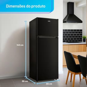 A Geladeira Refrigerador HQ-230RDF entrega o equilíbrio que casais e famílias pequenas procuram: 230 L totais 172 L no refrigerador e 58 L no freezer em um corpo de 55 55 140 cm que se encaixa na maioria dos projetos sem ajustes.