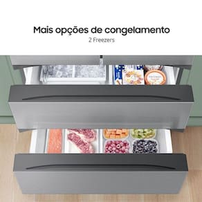 Gavetas Easy Slide para facilitar o acesso aos seus alimentos.Prateleiras ajustáveis e removíveis para personalizar o espaço interno.Gaveta Fresh Zone para manter frutas e legumes frescos por mais tempo.
