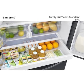 A Geladeira Frost Free RF27T5501SG Inverter Door Family Hub Com Spacemax e Soundbar com 614 litros possui configuração Inverse, deixando os alimentos na altura dos seus olhos, design sofisticado com 3 portas e alta capacidade! Com a tecnologia View Inside, você consegue olhar o que tem dentro da geladeira, sem precisar abrir a porta.