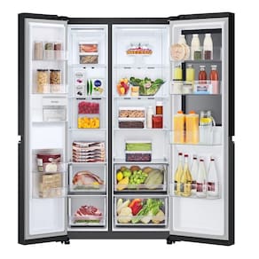 A geladeira/refrigerador Smart LG InstaView GC-V257SQV2 Black Inox vai te surpreender com tanta tecnologia. Ela tem sistema de degelo Frost Free, portas Side by Side, capacidade líquida total de 647L e é fabricada com acabamento em inox. Com design premium, ela é moderna, inteligente e com alta capacidade. Ainda tem alta eficiência energética A+++ com mais desempenho e consumo menor com compressor Smart Inverter. Com a tecnologia InstaView, toque 2 vezes e veja o interior sem precisar abrir a porta. Com DoorCooling+, suas bebidas geladas em menos tempo. O filtro Hygiene Fresh+ elimina até 99,9% das bactérias no interior da geladeira, mantendo os alimentos frescos e zero odores indesejados. A gaveta Fresh Zone mantém os alimentos frescos por mais tempo. E ainda, ela possui conectividade Wi-Fi através do aplicativo LG ThinQ. Tenha o controle da sua geladeira na palma da sua mão. Você possui liberdade total para gerenciar a temperatura interna ou ativar a função Express Freeze, quando e onde estiver.