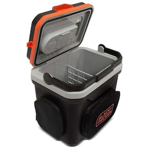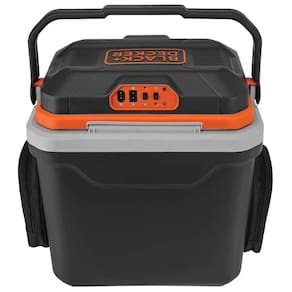 A Mini Geladeira Portátil Para Auto 24L BDC24LLA Black Decker é ideal para quem quer ter conforto e comodidade durante suas viagens. Com capacidade para 24 litros, a Mini Geladeira para Viagens Black & Decker Preta é termoelétrica e conserva seus alimentos em viagens, além de esfriar e deixálos em uma temperatura ideal. Funciona na tomada 12V do veículo, possui indicador de frio ou quente e é equipada com alça ajustável, tornando o transporte mais cômodo e ideal para viagens. Características Funciona na tomada 12vcc do veículo Esfria a 18ºc abaixo da temperatura ambiente e aquece a 55ºc Painel de operação indicador de frio ou quente Bolsa lateral para armazenamento equipada com alça tornando o transporte mais cômodo Capacidade de 24 litros Especificações Nome da marca: Black & Decker Modelo: BDC24LLA Voltagem: 110 volts Dimensões do pacote: 45,4 x 33,6 x 30,8 cm Dimensões do produto: 42 x 31 x 45 cm , 4,54 g Peso do envio: 5,6 Kg
