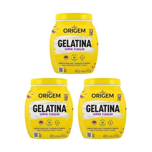 Descrição: A Gelatina Capilar Origem Super Fixação 400g é um produto capilar indicado para cabelos ondulados, cacheados e crespos. Possui uma fixação super poderosa, fazendo com que os cachos fiquem definidos por mais tempo, sem frizz ou aspecto pesado. Sua fórmula contém óleo de linhaça e azeite de chia, que juntos oferecem propriedades antioxidantes e efeito restaurador. Esses ingredientes ajudam a fortalecer os fios, deixando-os mais saudáveis e com brilho. Modo de usar: Aplique a gelatina nos cabelos úmidos ou secos, conforme a necessidade. Espalhe bem por todo o comprimento dos fios, enluvando-os. Ean: 7908825717260