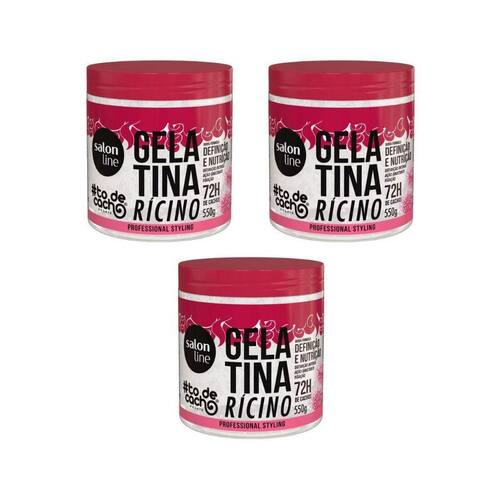 Na compra deste kit será enviado 03 unidades da gelatina capilar salon line 550g todecacho ricino cada